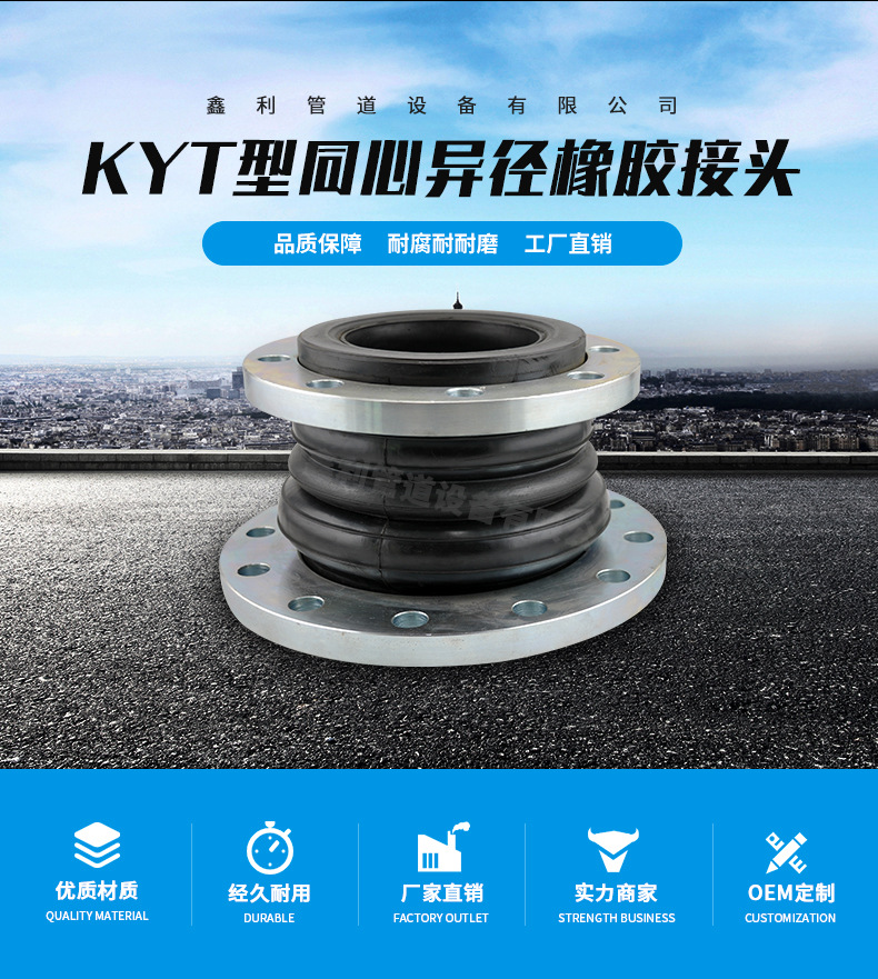 鑫利管道設(shè)備有限公司是生產(chǎn)各種橡膠接頭的生產(chǎn)廠家,。主要產(chǎn)品有橡膠管接頭、橡膠軟接頭、可曲撓橡膠接頭、單球體橡膠接頭、雙球體橡膠接頭、異徑橡膠接頭、卡箍橡膠接頭、絲扣橡膠接頭、90度橡膠接頭、異徑橡膠接頭、多球體橡膠接頭等。嚴格按照標(biāo)準(zhǔn)設(shè)計生產(chǎn),特殊規(guī)格型號可按用戶需要和要求訂做。設(shè)計獨特,結(jié)構(gòu)新穎合理,性能可靠,給工程施工、維修帶來極大的方便和效益。 我公司技術(shù)力量雄厚,設(shè)備精良,工藝好,有一批從事多年機械設(shè)計制造經(jīng)驗豐富的高級工程技術(shù)人員和專業(yè)技術(shù)工人。生產(chǎn)的產(chǎn)品廣泛用于供水、排水、電力、冶金、城建、石油、化工環(huán)保各大中型企業(yè)等領(lǐng)域的供排水事業(yè)的建設(shè)中,“鑫利人”竭誠歡迎各界朋友、新老用戶前來我們公司實地考察指導(dǎo)、精誠合作、共同發(fā)展、同創(chuàng)大業(yè)。熱線: